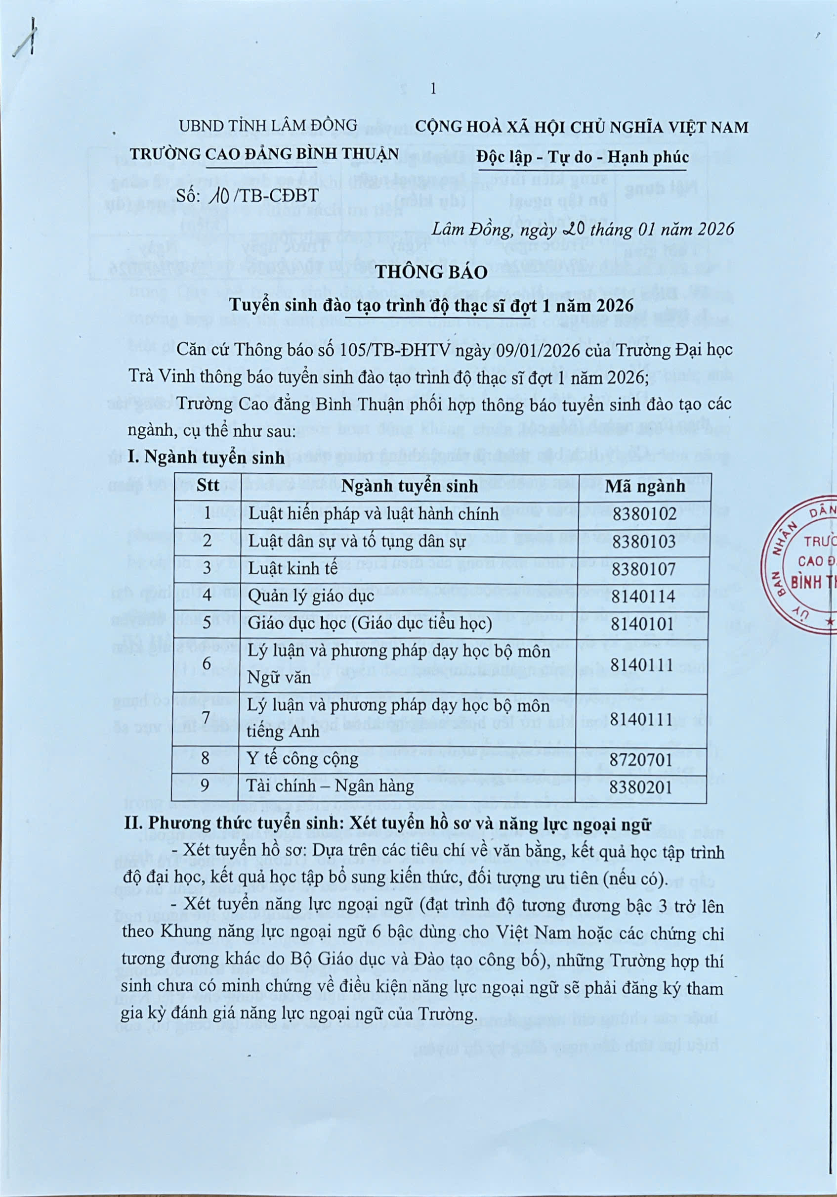 THÔNG BÁO TUYỂN SINH THẠC SĨ