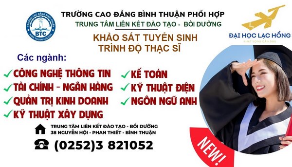 🌈Trường Cao đẳng Bình Thuận phối hợp với trường Đại học Lạc Hồng tuyển sinh trình độ Thạc sĩ các ngành như sau: