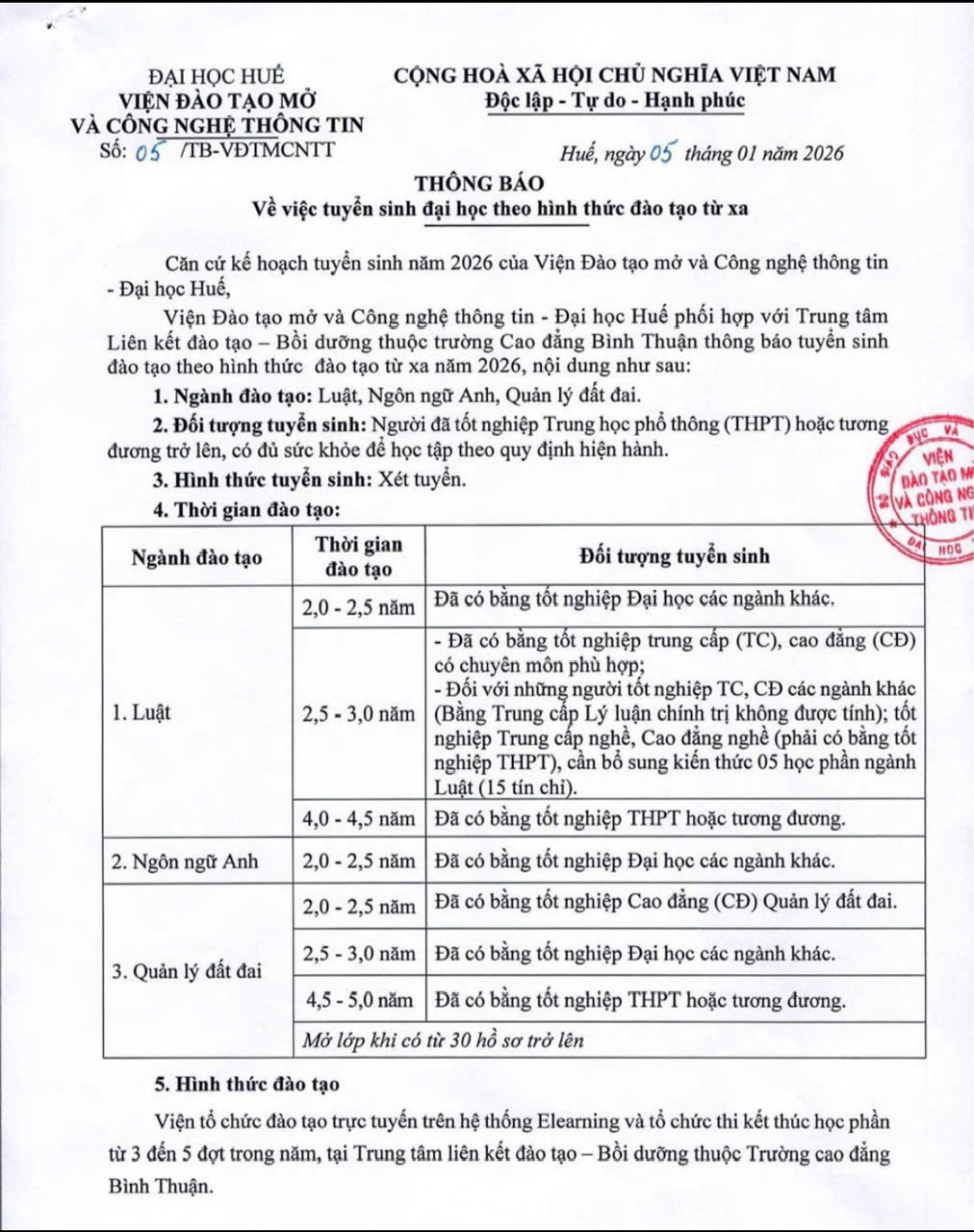 CÁC LỚP LIÊN THÔNG ĐẠI HỌC: ĐH HUẾTHÔNG BÁO TUYỂN SINH ĐẠI HỌC Tuyển sinh Đào tại Từ xa – ĐH Huế 26/02/2026 58