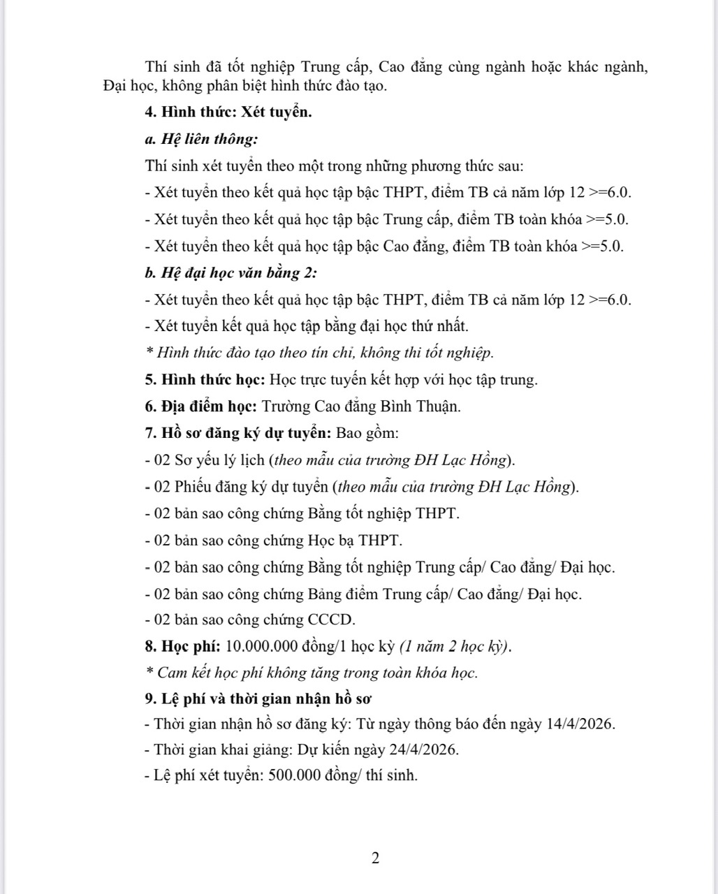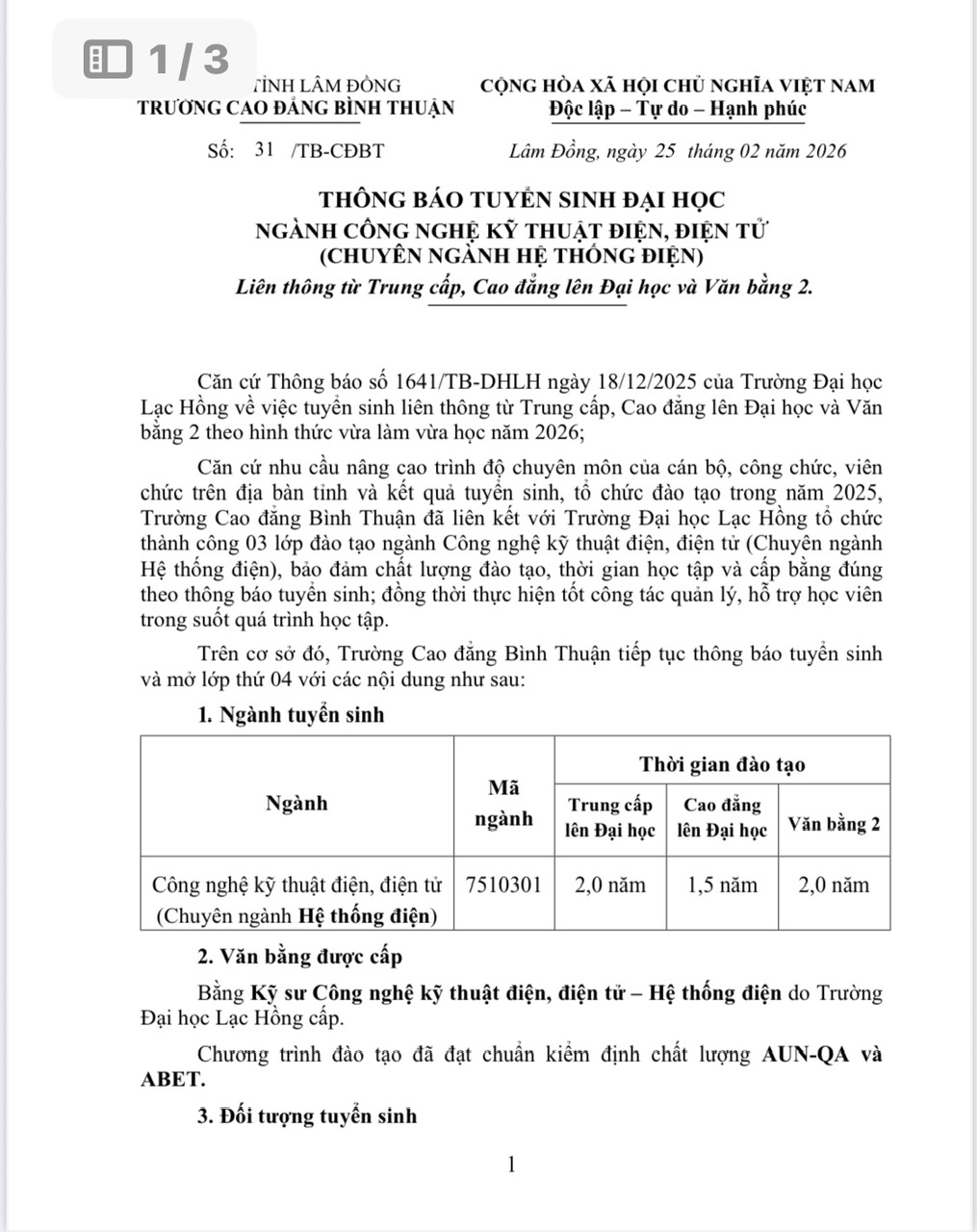 CÁC LỚP LIÊN THÔNG ĐẠI HỌC: ĐH LẠC HỒNGTHÔNG BÁO TUYỂN SINH ĐẠI HỌC TUYỂN SINH ĐH NGÀNH CÔNG NGHỆ KỸ THUẬT ĐIỆN, ĐIỆN TỬ 26/02/2026 19