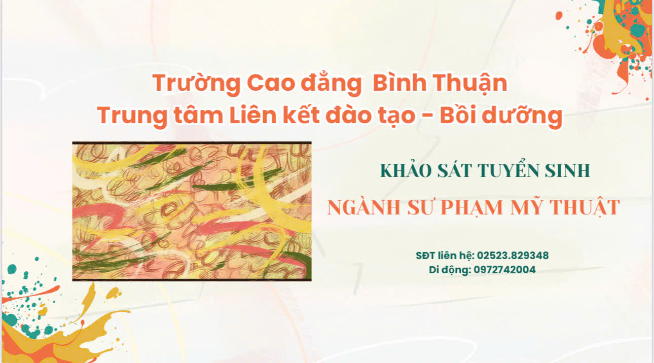 Trường Cao đẳng Bình Thuận phối hợp với các Trường đại học uy tín trên cả nước dự kiến tuyển sinh liên thông đại học ngành Sư phạm Mỹ thuật.
