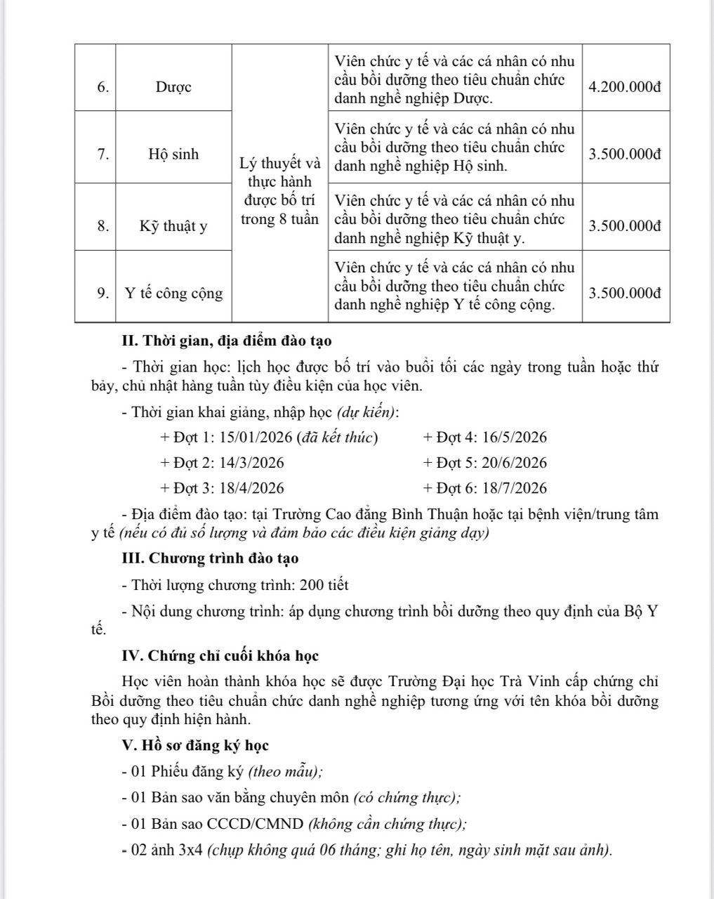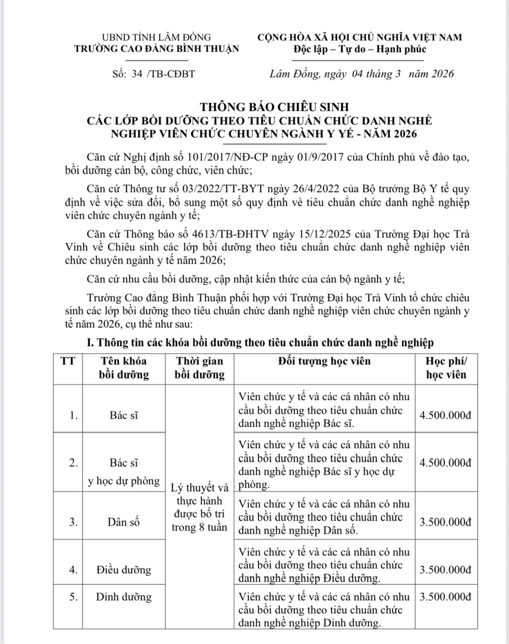 THÔNG BÁO TUYỂN SINH LỚP NGẮN HẠNTUYEN SINH NGAN HAN CHIÊU SINH CÁC LỚP CHỨC DANH NGHỀ NGHIỆP CHUYÊN NGÀNH Y TẾ 12/03/2026 16