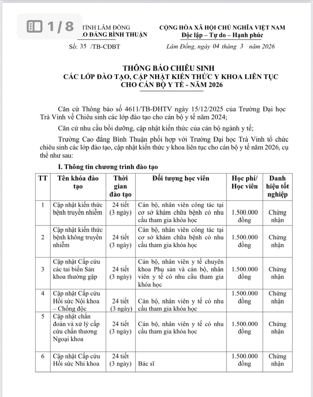 THÔNG BÁO TUYỂN SINH LỚP NGẮN HẠNTUYEN SINH NGAN HAN CHIÊU SINH CÁC LỚP ĐÀO TẠO, CẬP NHẬT KIẾN THỨC Y KHOA CHO CÁN BỘ Y TẾ 12/03/2026 8