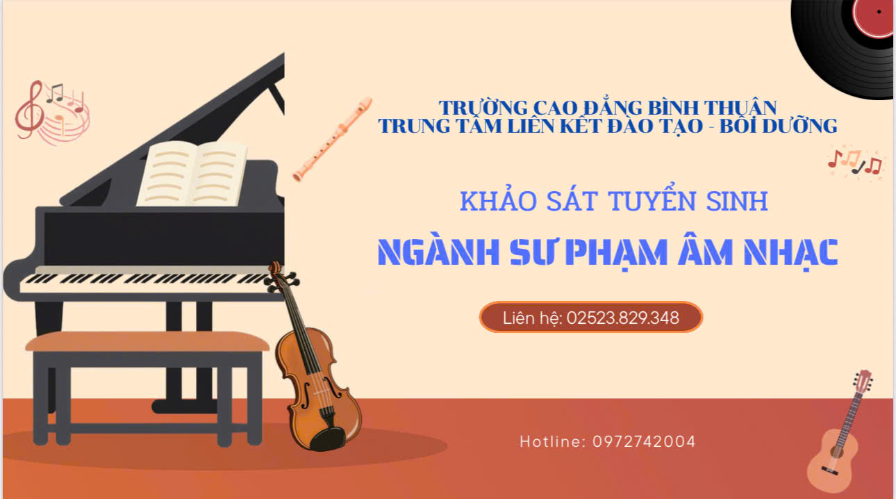 ♻️♻️Trường Cao đẳng Bình Thuận phối hợp với Nhạc viện Thành phố Hồ Chí Minh dự kiến tuyển sinh liên thông ngành Sư phạm Âm nhạc.